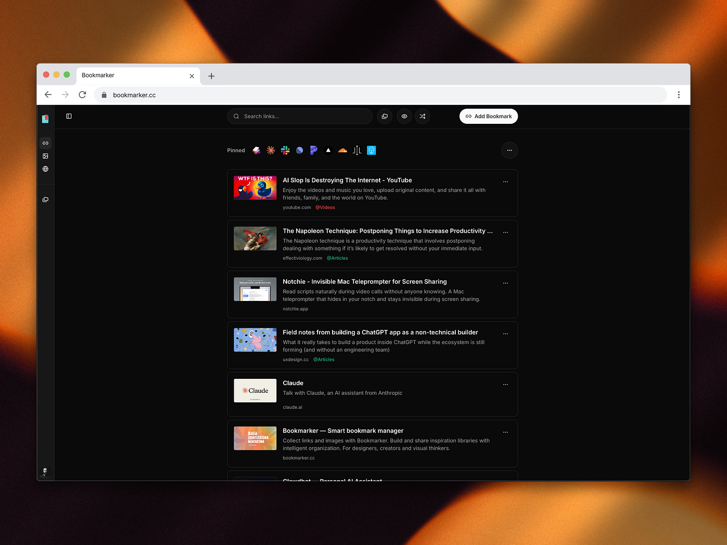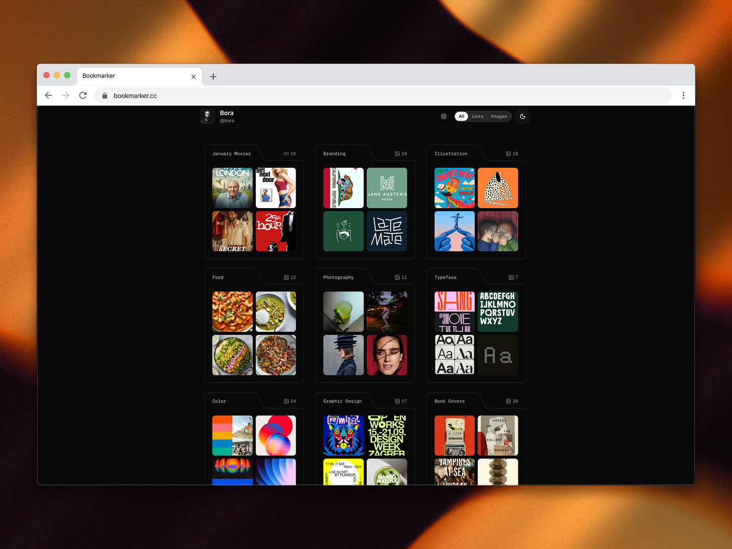 Bookmarker started from that position. It is meant to be a place to collect, organize, and share links and images without turning the act of saving into work.