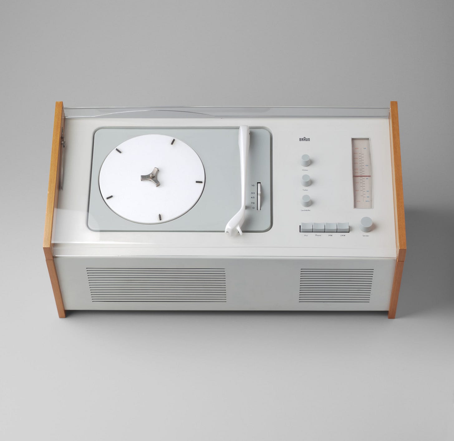One early and widely cited example of this approach was the SK4 radiogram (1956), for which Rams introduced a clear Perspex lid. The decision was not decorative; it made the product visually lighter, more honest about its construction, and easier to understand. By 1961, Rams was appointed head of design at Braun, a position he held until 1995. During this period, Braun’s products became internationally recognized for their restraint, coherence, and usability.